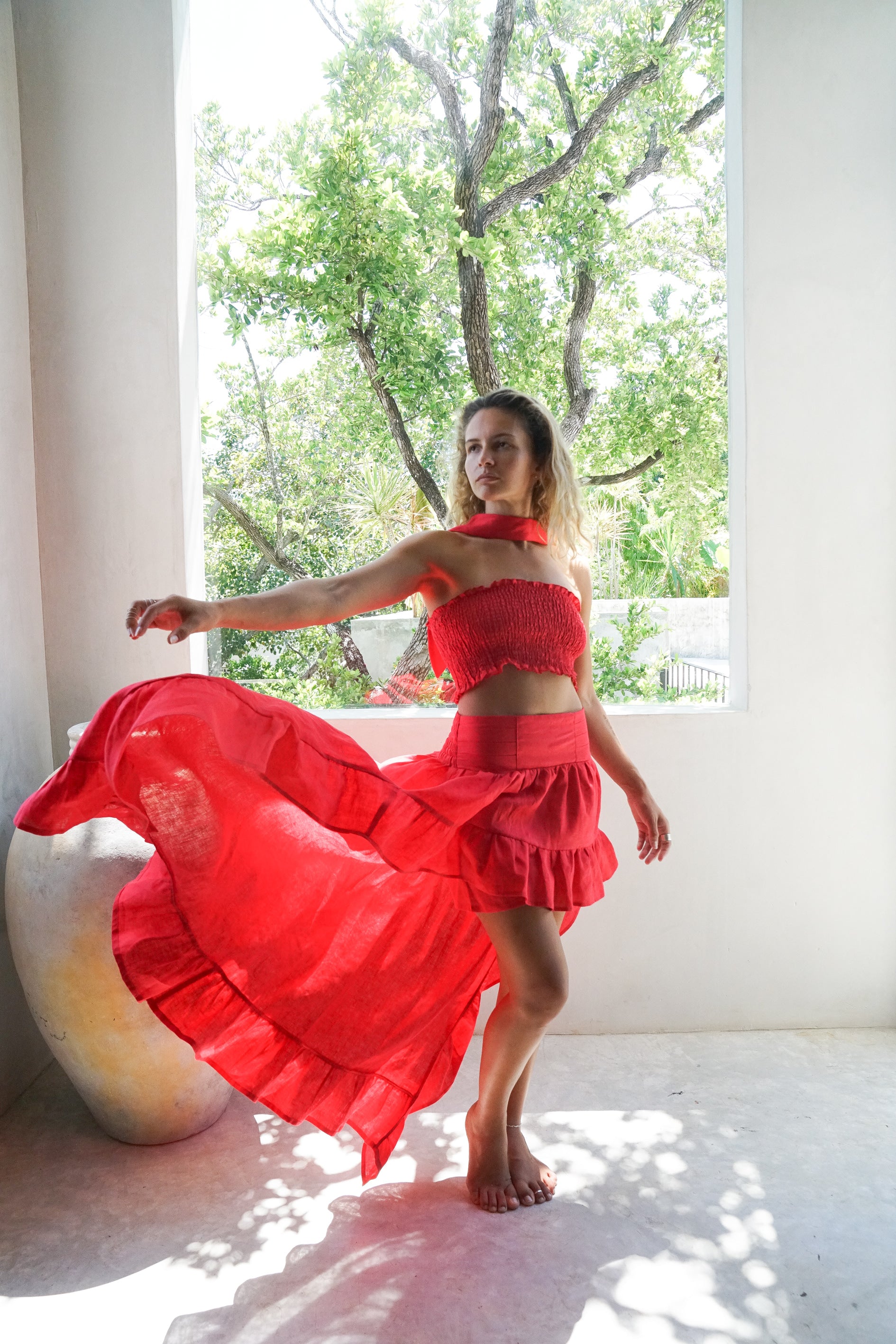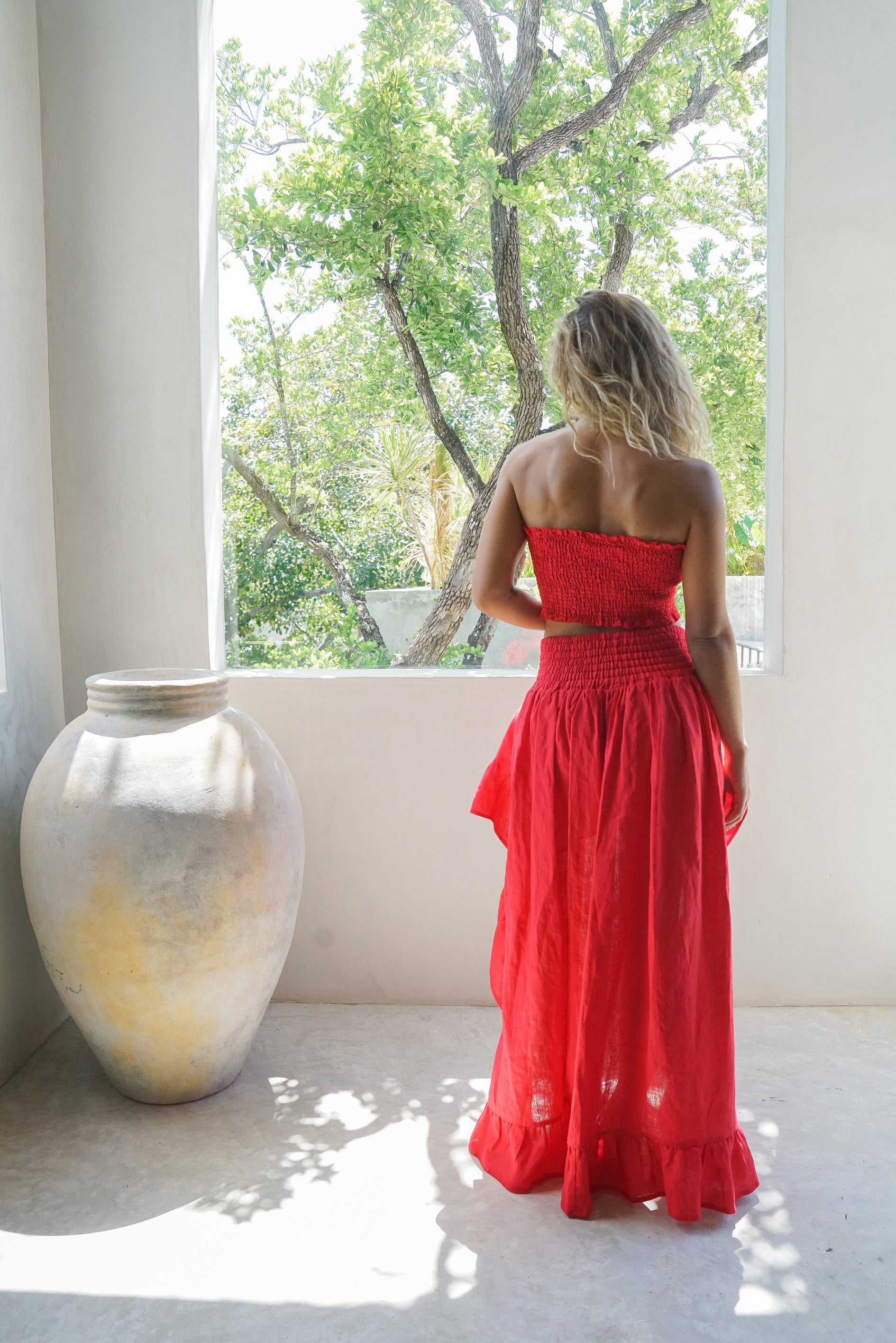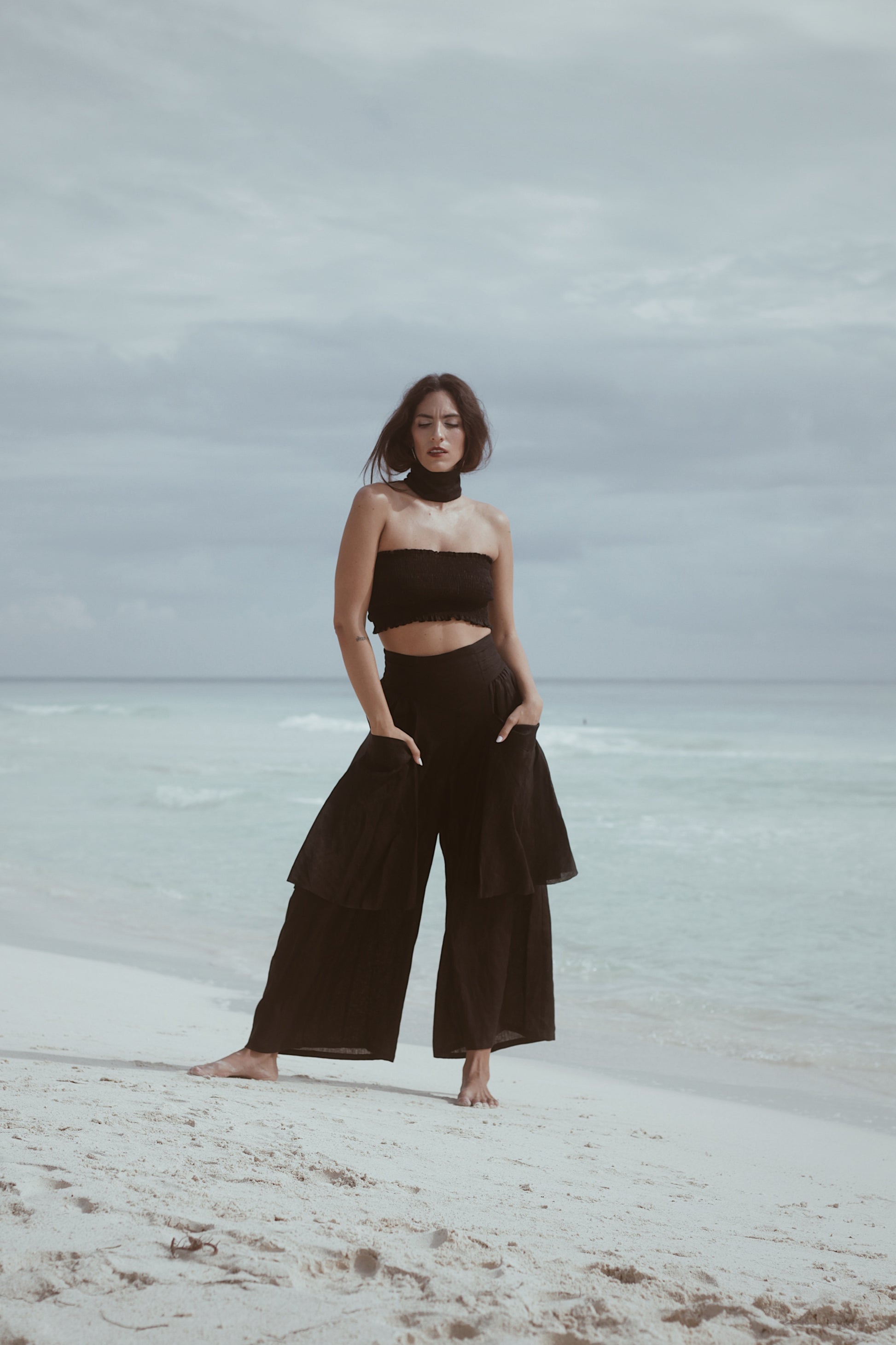 Our Chloe top is beautifully crafted in Italian linen featuring a detachable tie that can be worn in multiple ways.
