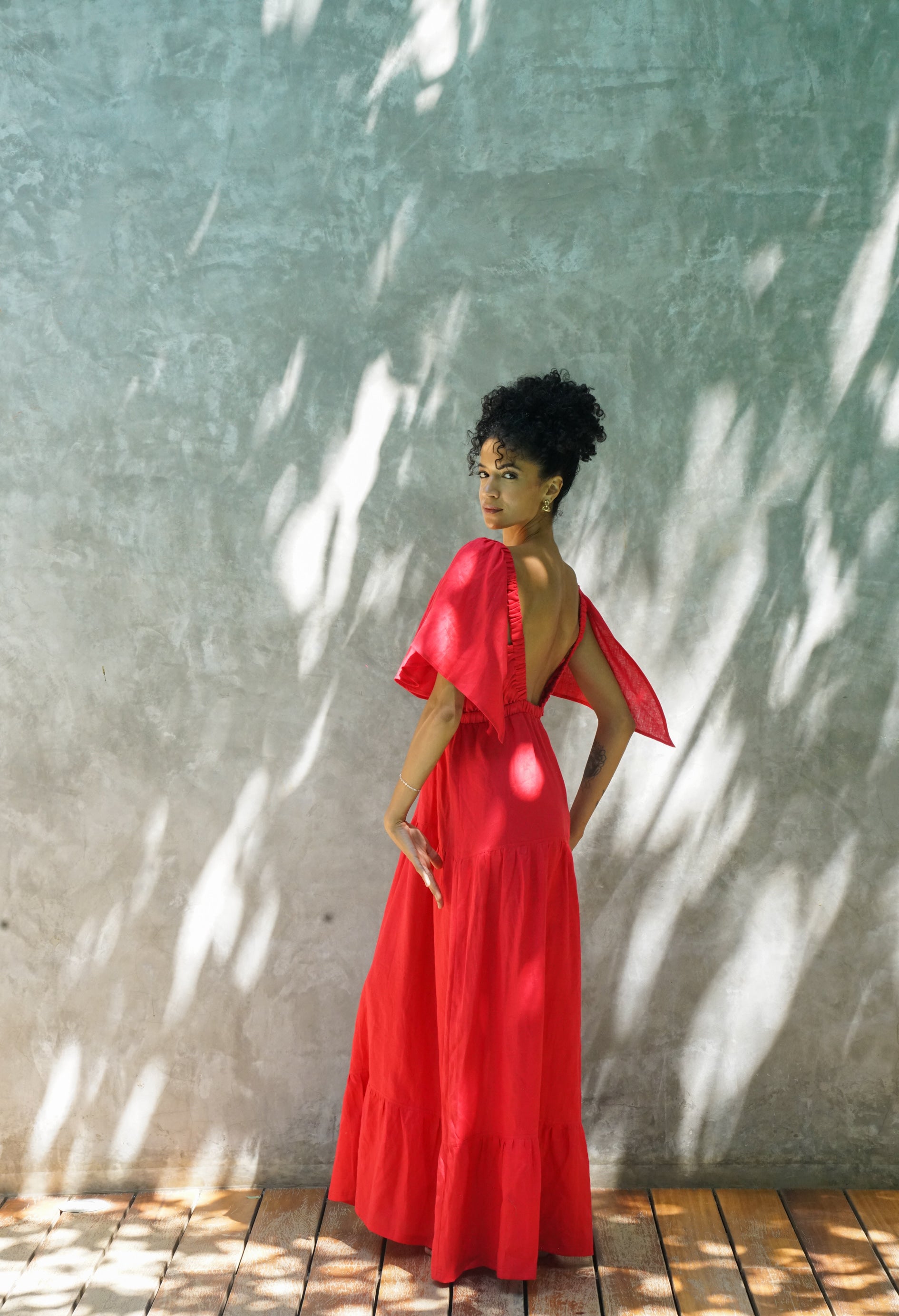 - Flutter cape-back sleeves detail